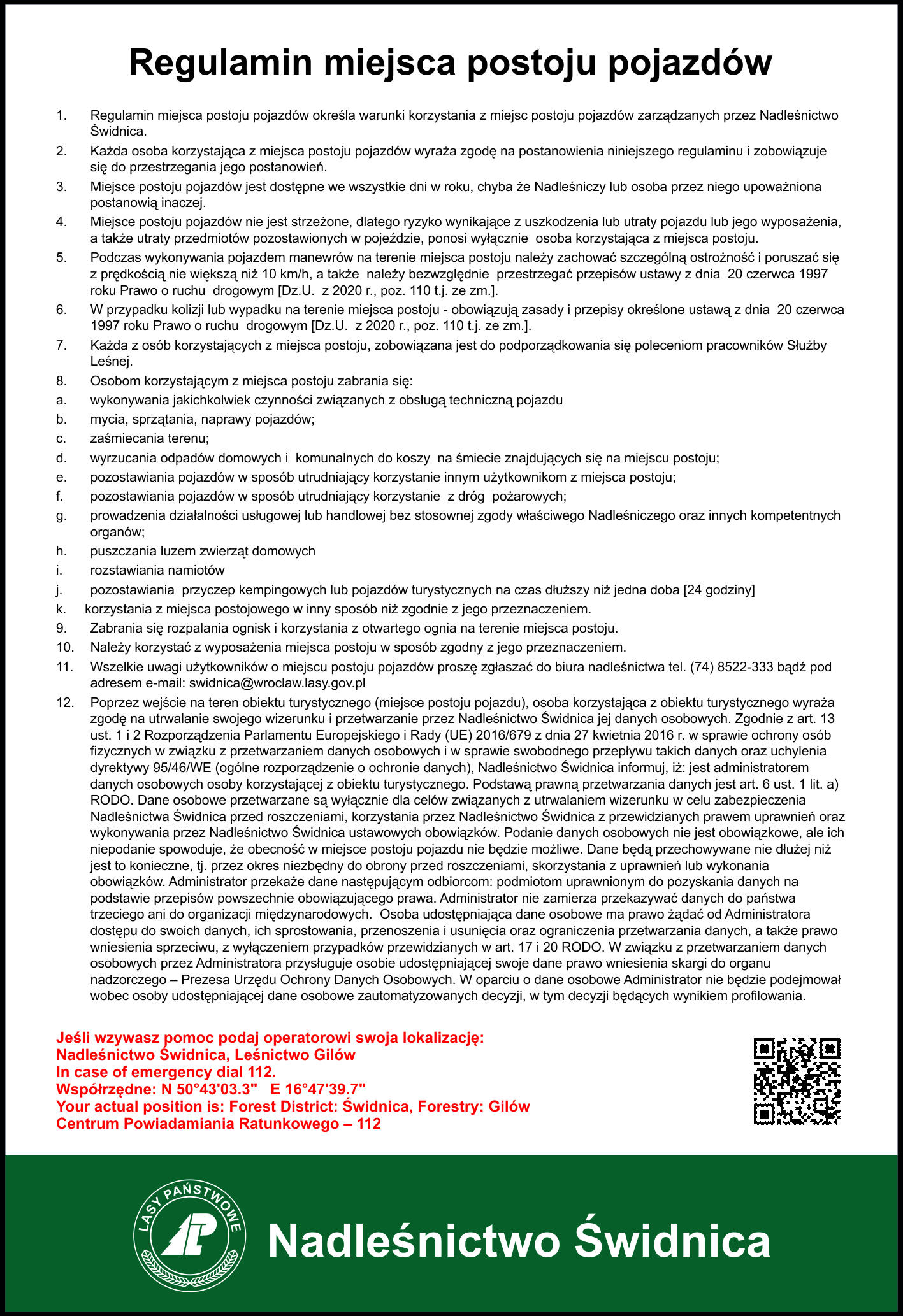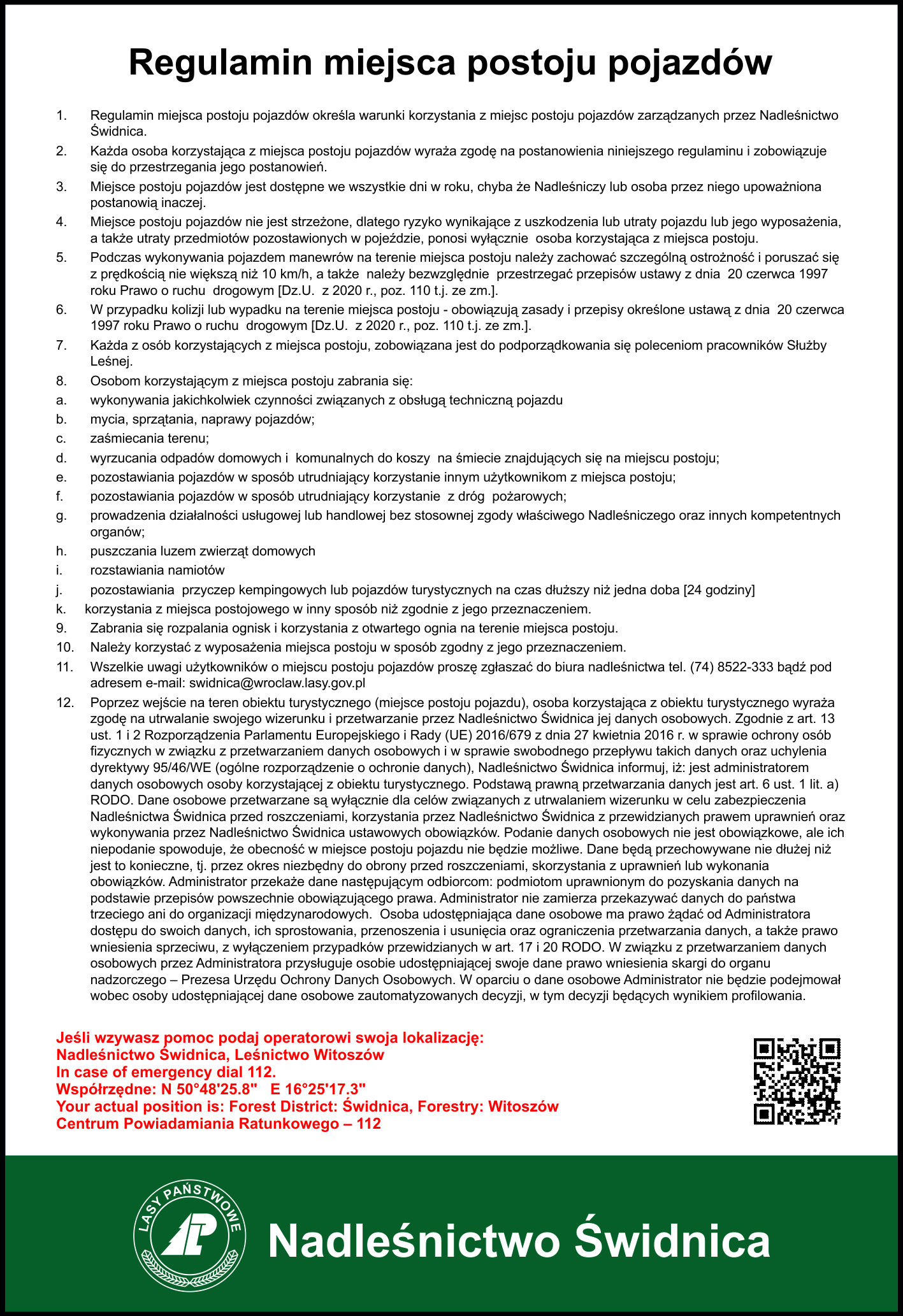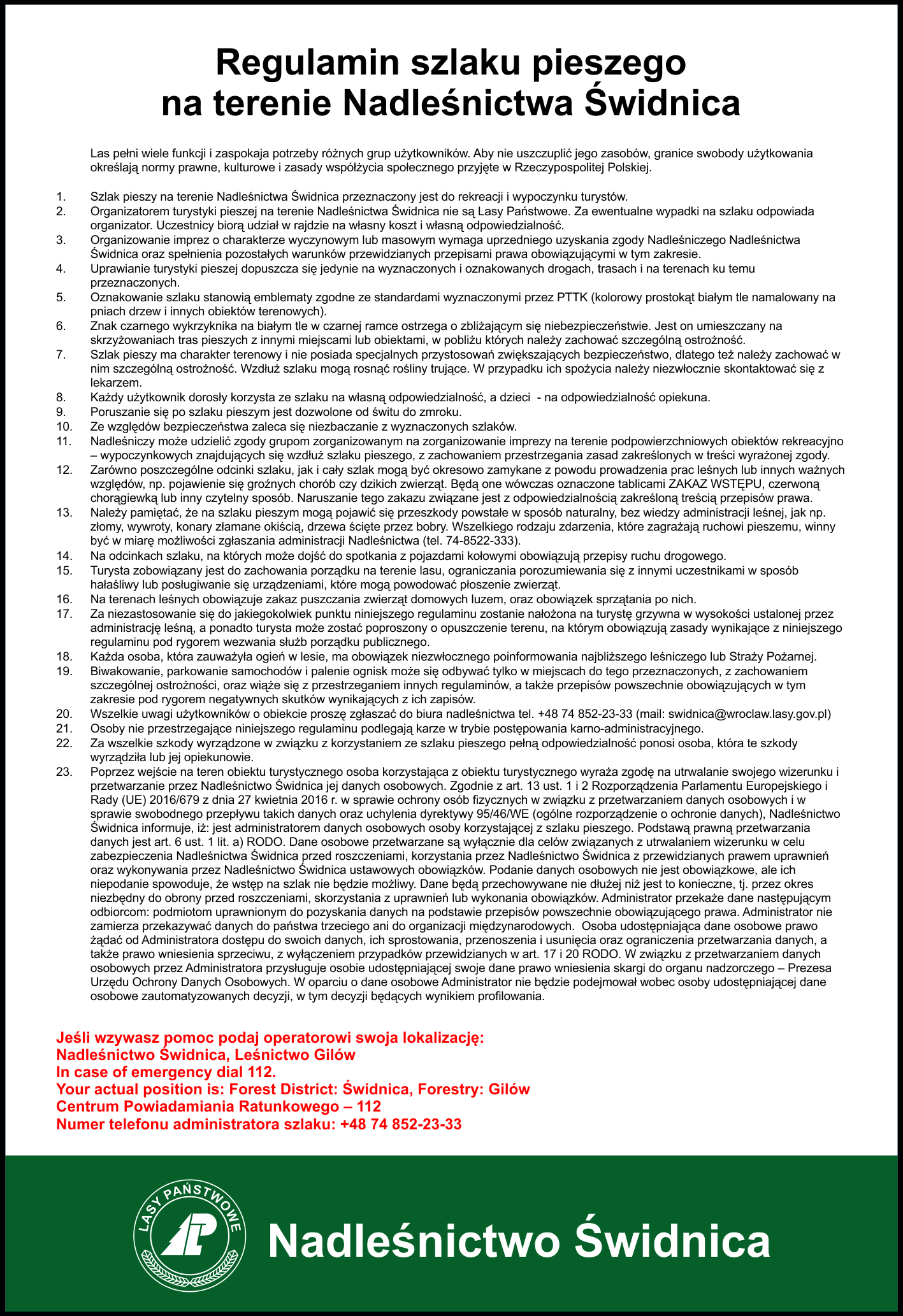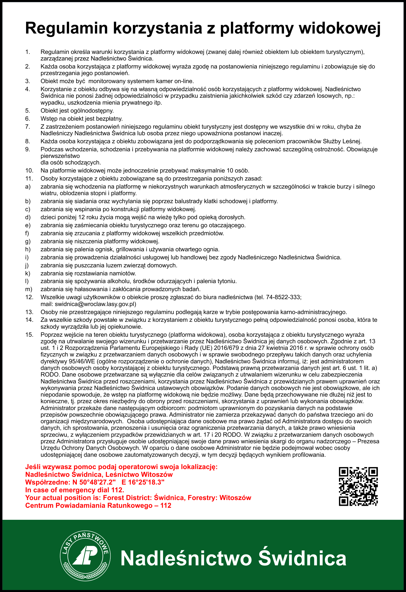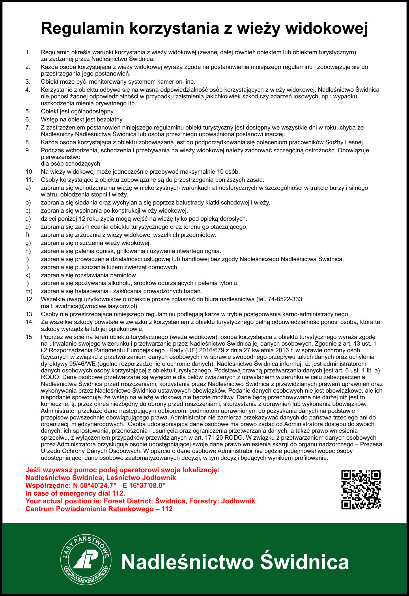 Regulaminy miejsc i obiektów turystycznych zarządzanych przez Nadleśnictwo Świdnica.